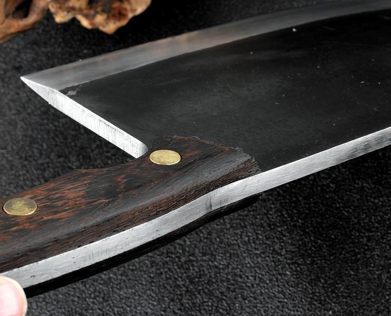 Esta linda faca é feita de aço de alto teor de manganês por ferreiros profissionais que usam técnicas tradicionais chinesas transmitidas através de milhares de gerações. As facas feitas com estas técnicas experientes têm sido muito difíceis de encontrar e provaram ser perfeitas para qualquer tipo de uso e até mesmo abate.
