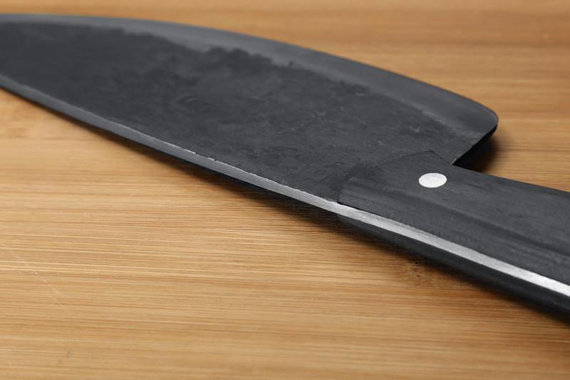 A lâmina grande e resistente é feita de aço Su e aço de carbono que passaram por vários procedimentos de forjamento para tornar a lâmina extremamente afiada, forte e durável.
