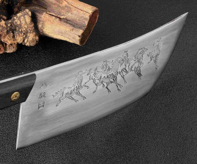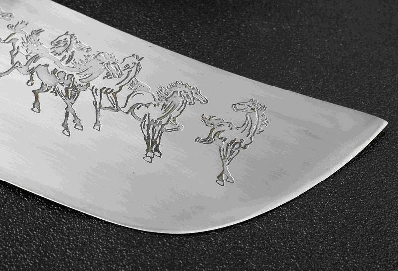 Nada pode competir com uma faca de açougueiro afiada com cavalos esculpidos em sua lâmina. Sim, cavalos: Esta faca lendária tem uma tropa de graciosos cavalos selvagens correndo um ao lado do outro. Não tem como ficar mais épico do que isso.